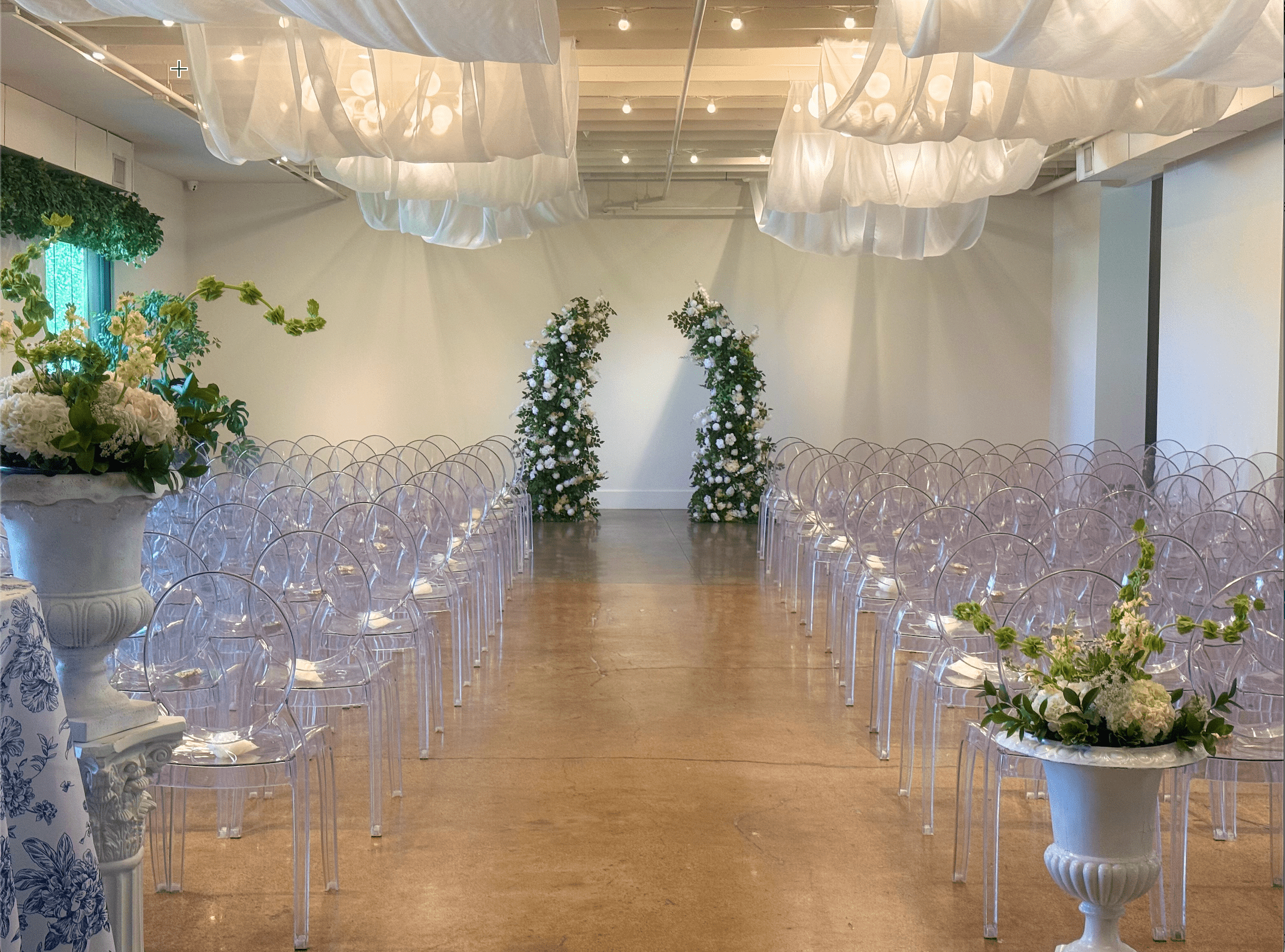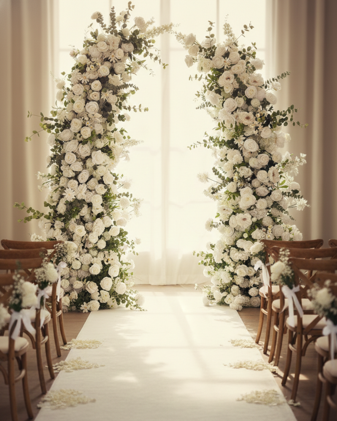 Elevate your Nashville ceremony with luxury silk arches and aisle flowers.